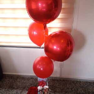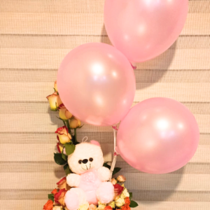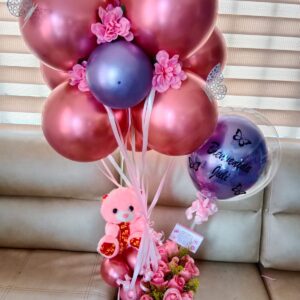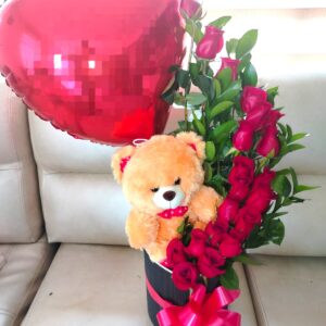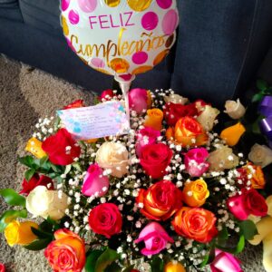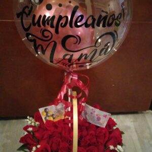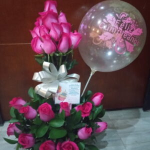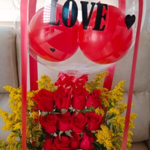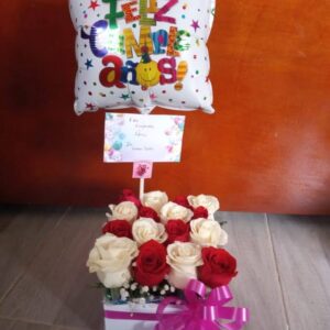 Arreglo de rosas en caja alta con globos