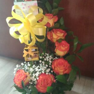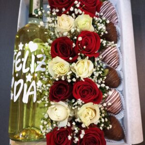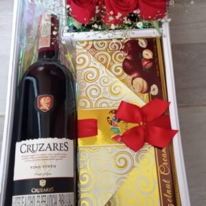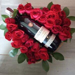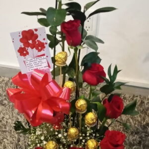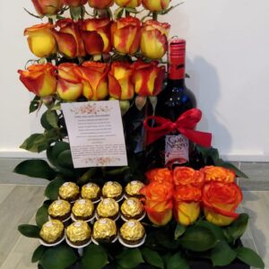 Arreglo Delux con ferrero, y vino gato negro