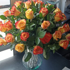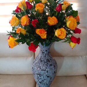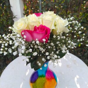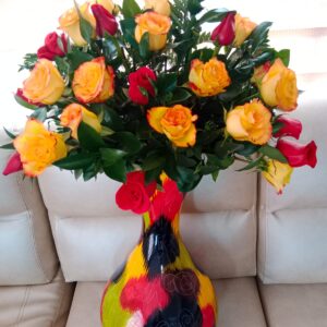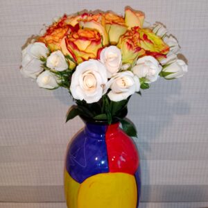 Jarrón vitral mediano artesanal de Ráquira por 50 rosas 35 cm