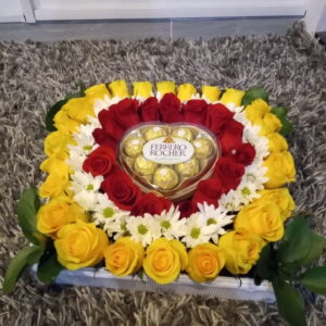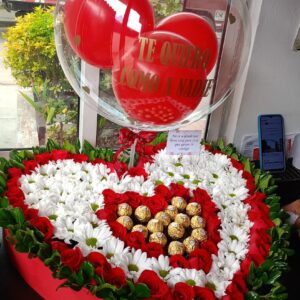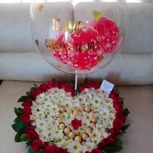 Corazón grande con margaritas, ferrero y globo burbuja personalizado
