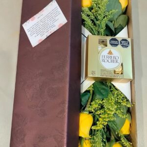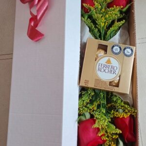 Caja por 12 rosas con Ferrero por 4, en caja delux