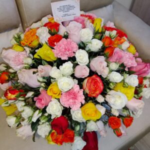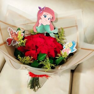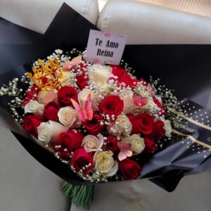 Bouquet de 50 rosas, colores con mariposas y corona en papel coreano