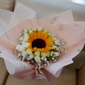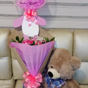 Bouquet de 6 rosas en papel coreano con globo metalizado grande