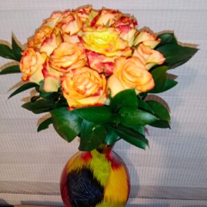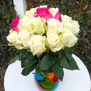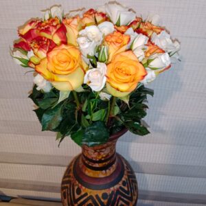 Jarrón artesanal de Ráquira con 24 rosas 32 cm de alto