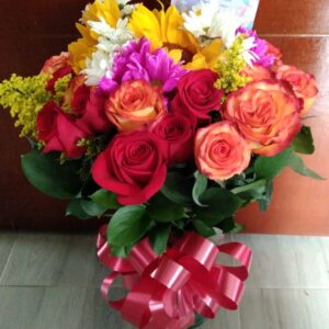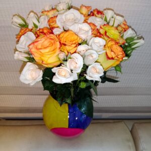 Jarrón colores artesanal de Ráquira con 50 rosas 52 cm