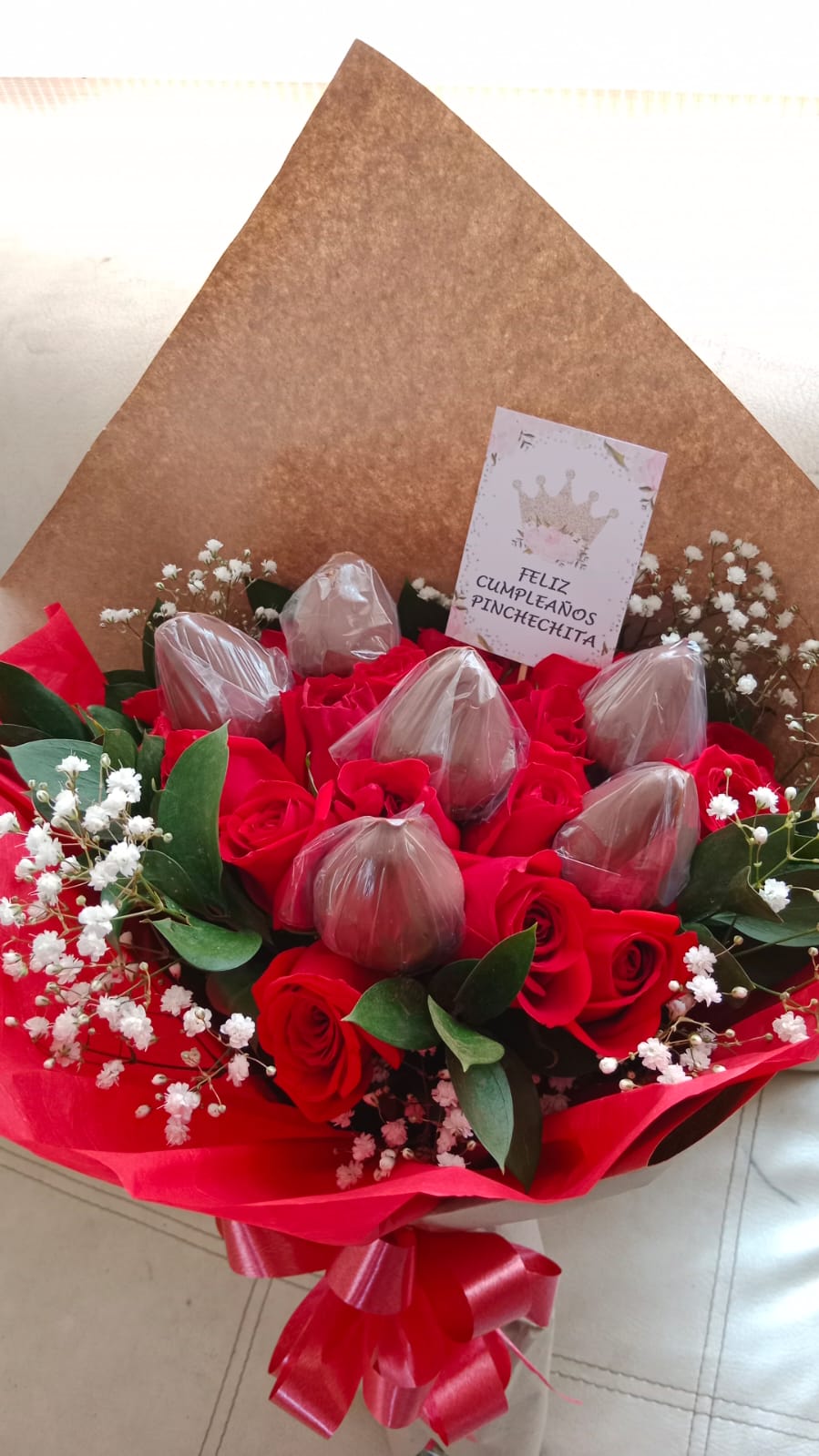 Bouquet de 24 rosas con 6 fresas achocolatadas