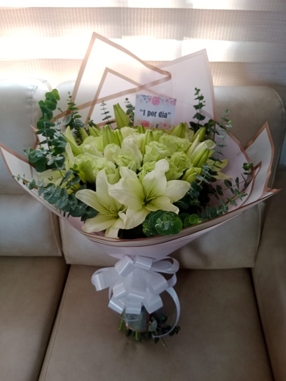 Sé el primero en valorar “Bouquet por 24 rosas y 10 varas de lirio”