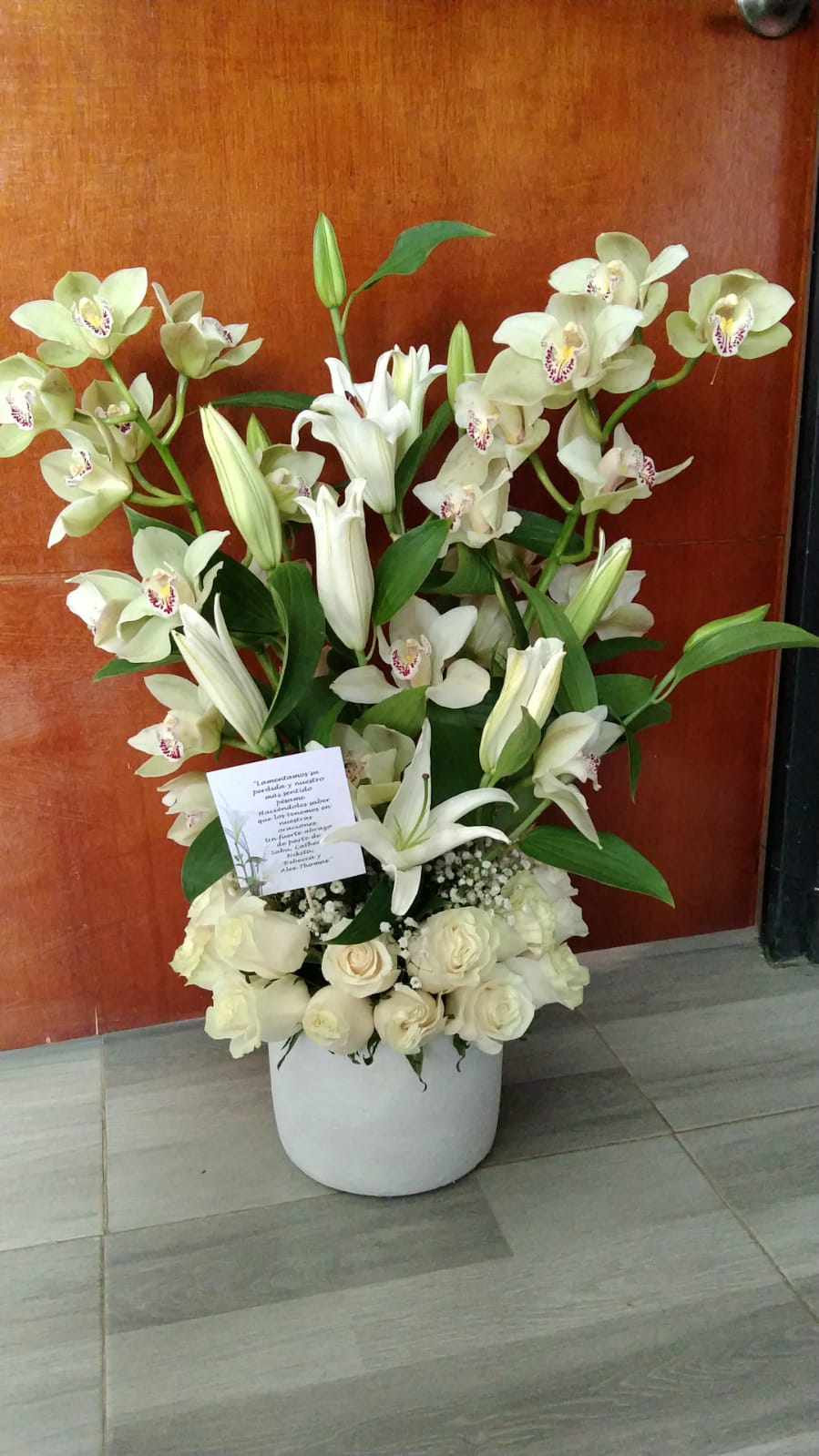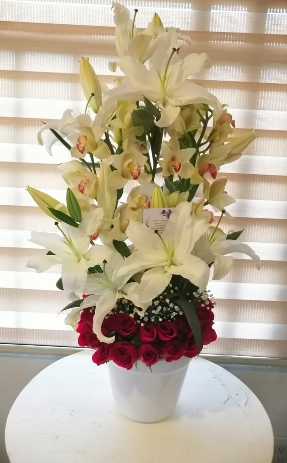 Orquídea, lirios y rosas