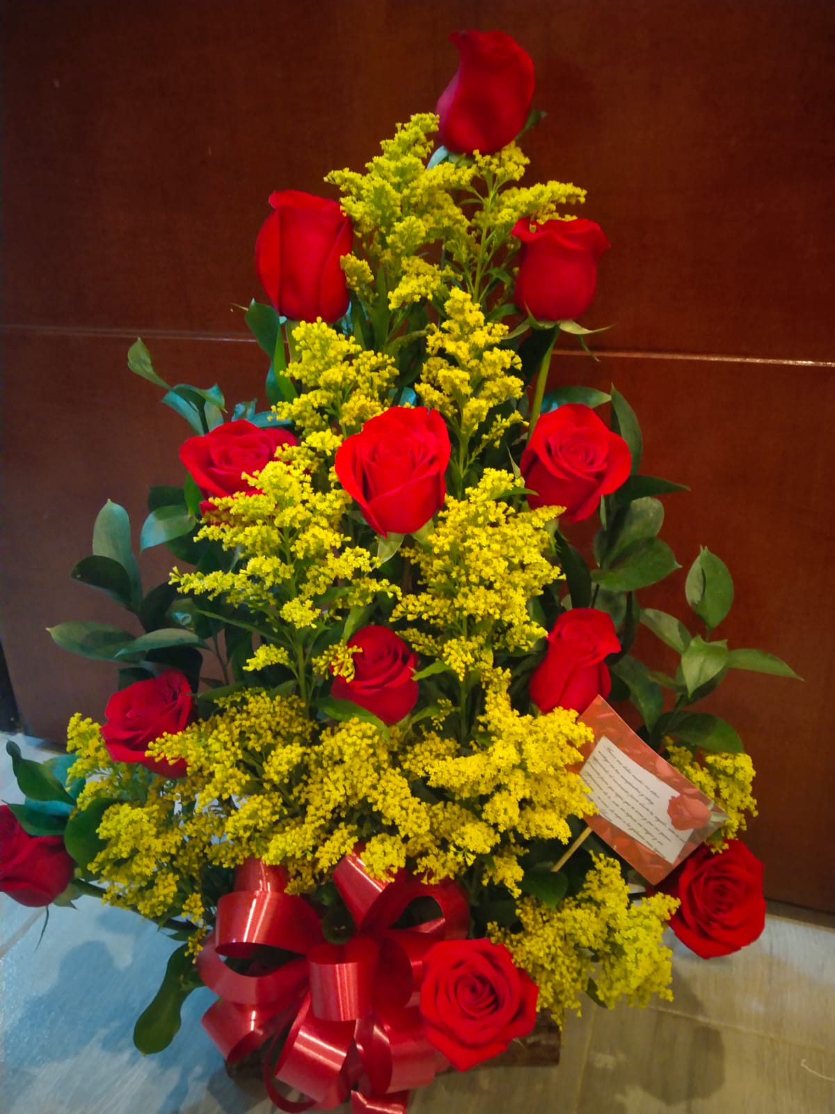 Piramide por 12 rosas y solidago